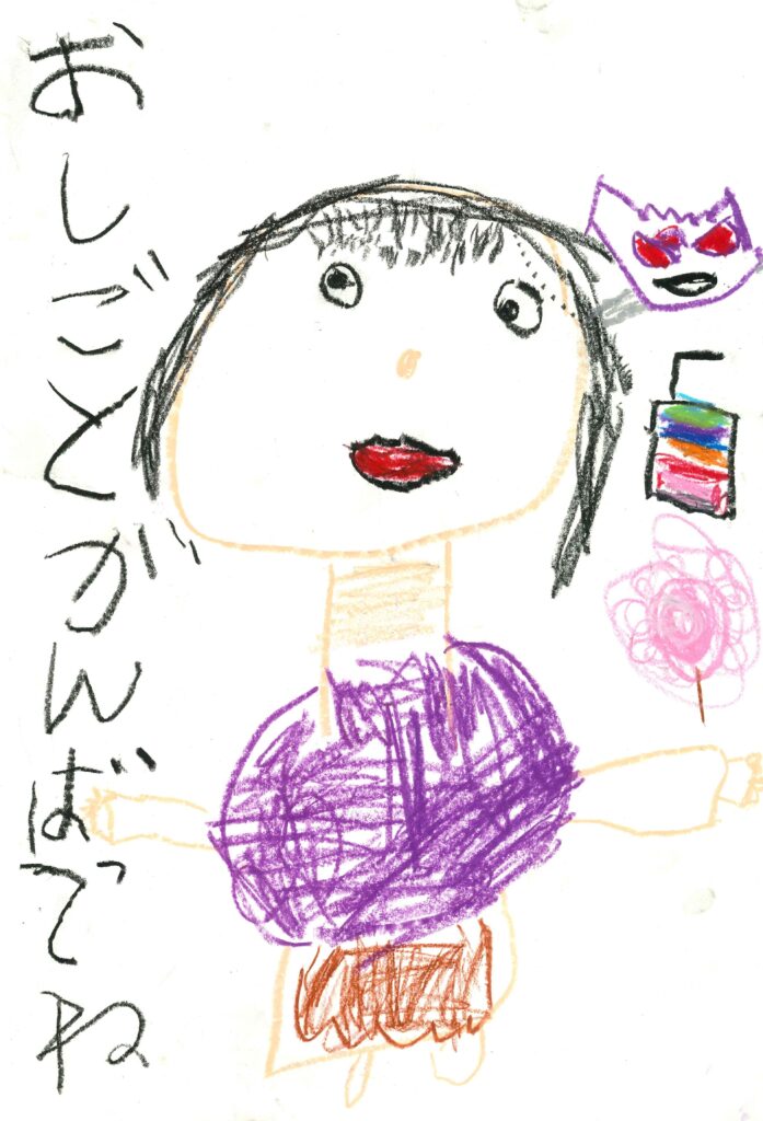 皆さんが心を込めて描いてくれたこの絵が本当に大好きです。この芸術作品をたくさんの人が鑑賞できるように自分が様々な場所に出向きたいと思います。これからもたくさん勉強して、努力してください。