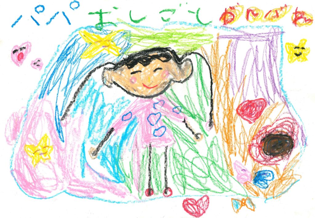 お父さんが、だいすきなんだね!お仕事から帰ってきたお父さんに大きな声でありがとうだいすきだよと気持ちを毎日伝えてね。